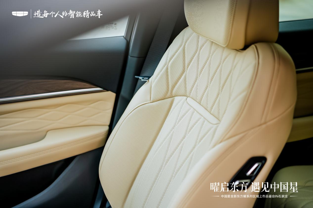 星越L东方曜则以大尺寸直瀑格栅彰显中式豪华气场,内饰升级双14.6英寸双联屏,更将“奢享女王副驾”与敦煌元素相融——8点座椅按摩、4项腿托调节带来的零重力坐姿,搭配莲华映月纹样缝线,让舒适体验与文化质感共生。东方曜的这些设计,超越了符号化的表达,实现文化符号与科技产品的共生共融,让每一次驾乘都成为与东方美学的深度对话,呈现更符合国人审美的“中式豪华”。