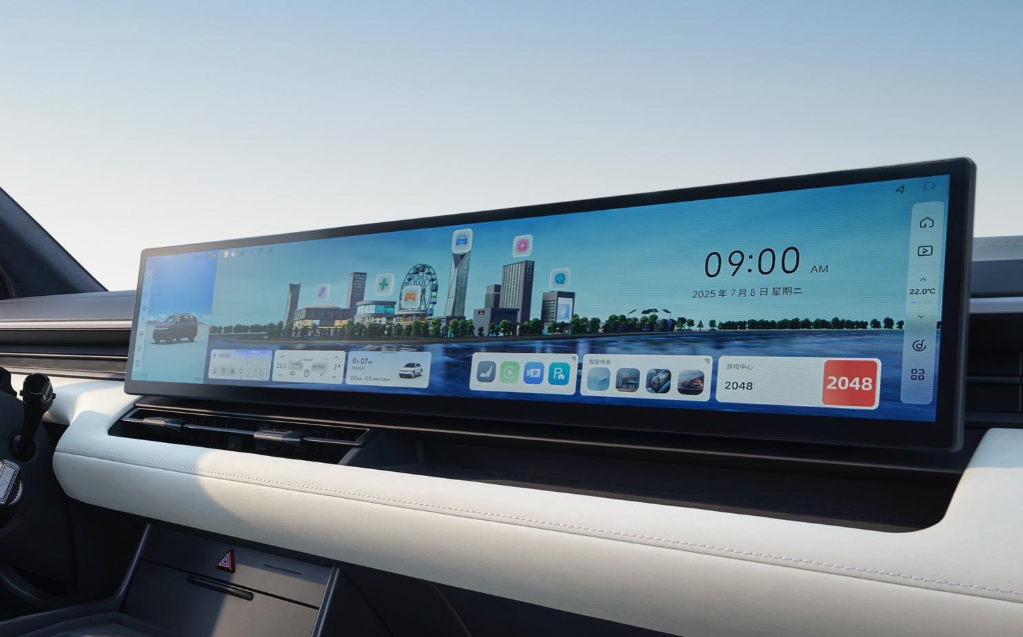 在视觉交互方面,EO羿欧配备一块27英寸超薄宽幕显示屏,兼顾驾驶席与副驾的视野与信息分区。该屏幕具备4K高清分辨率,支持1000cd/m²的高亮度输出,确保在强光和逆光环境下依然具备清晰可读性。其镁合金外壳在保证强度和抗腐蚀能力的同时,进一步压缩了整机厚度,指向同级最薄的车载大屏形态。