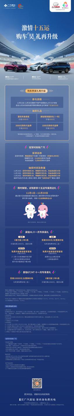 为了能让消费者更轻松地拥有昊铂HL,广汽昊铂特意推出诚意满满的“十一月限时昊礼”。即日起下定昊铂HL,并于11月30日前完成开票,即可参加抽奖活动,有机会赢取至高价值10000元的整车终身质保。