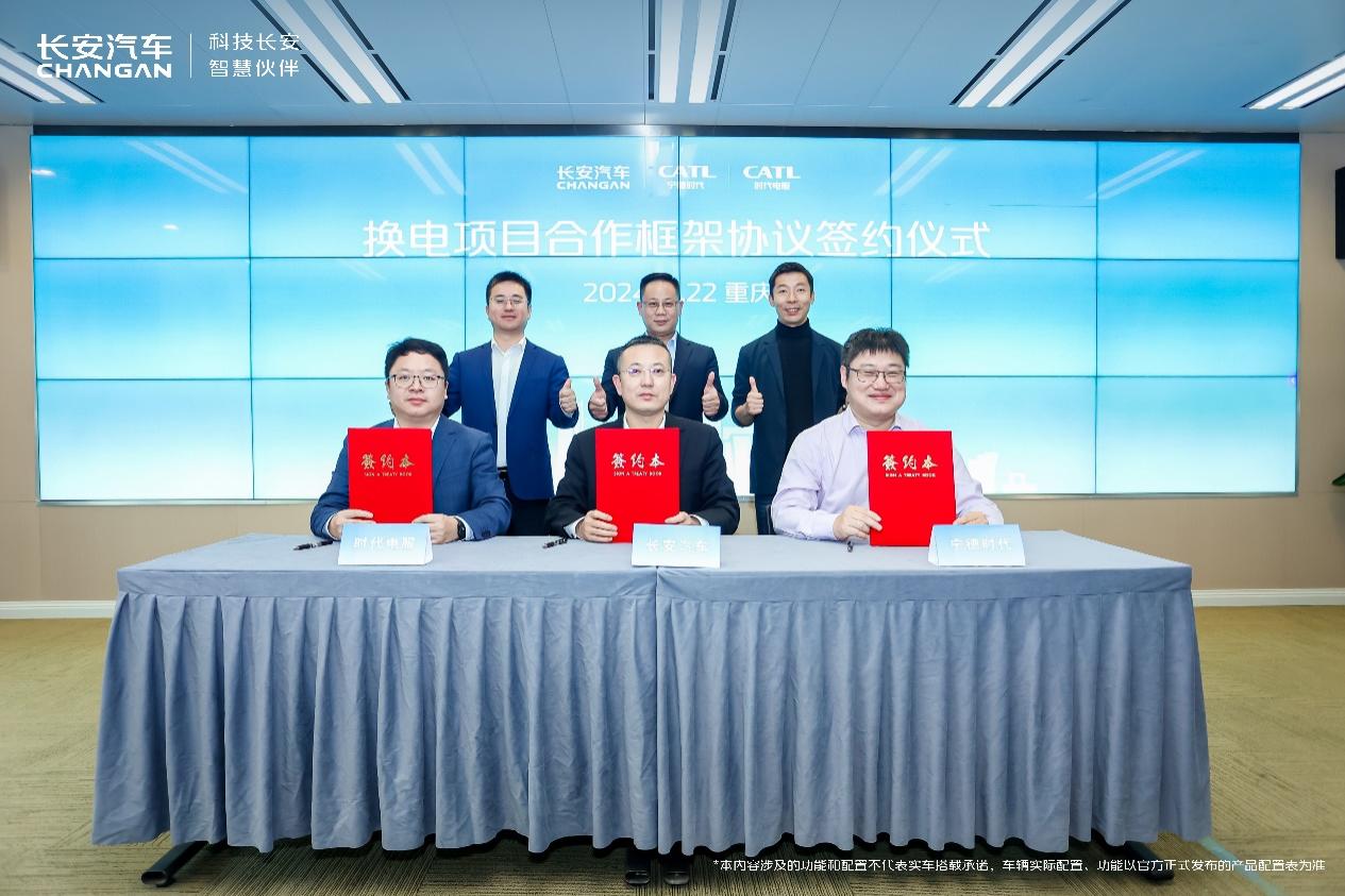 2024年11月22日,长安汽车、宁德时代、时代电服在重庆举行换电项目三方合作协议签约仪式,同时还与出租车企业伙伴举行意向订单签约仪式。现场欧尚520重磅亮相,展示了换电过程,历时2分钟即可拥有500公里续航,成为出行市场新标杆。