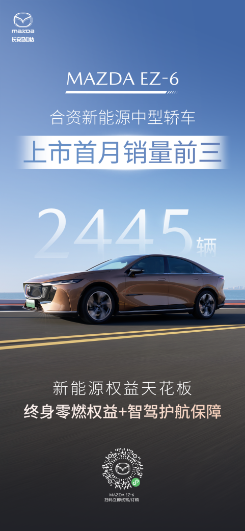 MAZDA EZ-6上市首月销量开门红 上榜合资新能源中型轿车前三