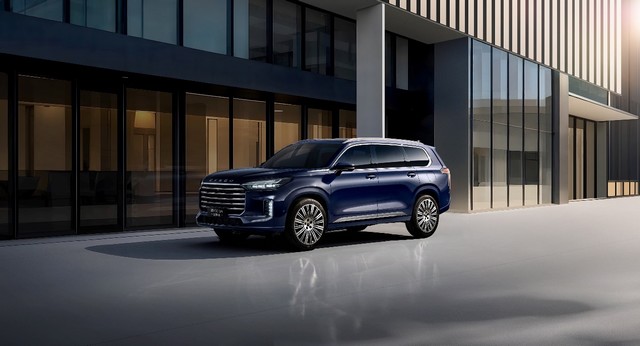 从发布的星途揽月C-DM外观图来看,新车延续主打豪华中大型SUV定位,此前的申报信息中也有介绍,星途揽月C-DM长宽高分别为5010mm、1940mm、1800mm,轴距 2900mm,整体车身长度相较现款燃油版增加了40mm;车头部分设计延续了揽月国际版前脸造型,多条幅前横格栅、大尺寸八边形中网和矩阵式头灯组合,气场全开,极具冲击力与辨识度,搭配车侧流畅线条,尽显大气尊贵风范。