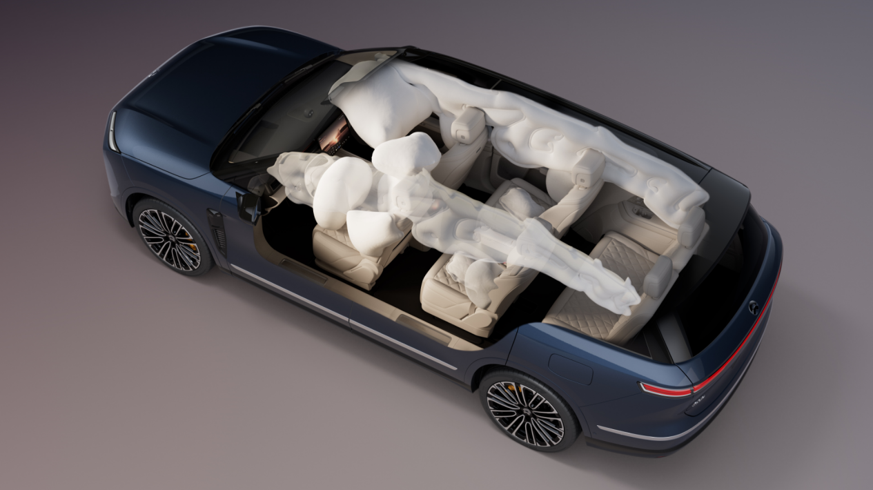 全新 ES8 拥有全车智能约束系统,同级最多的 11 个安全气囊,全车气囊体积 474L,同级第一,为每位乘客提供顶级安全防护。蔚来首创的主驾智能约束系统,可以自适应调整安全带和气囊,为不同身材的驾驶员实现更精准的保护。同级唯一的第二排大躺姿全向安全系统,包含同级唯一的双坐垫安全气囊,结合双座椅集成式安全带,超高强度座椅骨架和坐垫骨架溃缩吸能装置,有效降低大角度躺姿下的安全风险。
