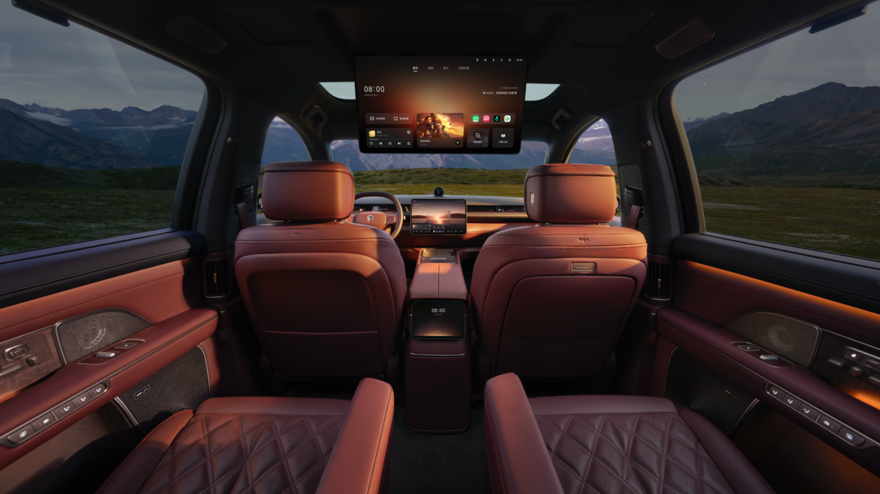 前后双杜比视界大屏幕,带来专业级观影享受。15.6 英寸 AMOLED 中控横屏呈现细腻画质。同级唯一的车规级 21.4 英寸 mini-LED 天空屏,拥有高清分辨率和 1,000,000 : 1 的超高对比度,结合行业首创的「天空中置」扬声器,真正实现精准的音画同源,是当前后排影音娱乐最佳解决方案。行业首创「流光溢彩」AI 氛围,实时调度全车 1,600 万色动态氛围灯与电影画面实时联动,带来全感官沉浸盛宴。