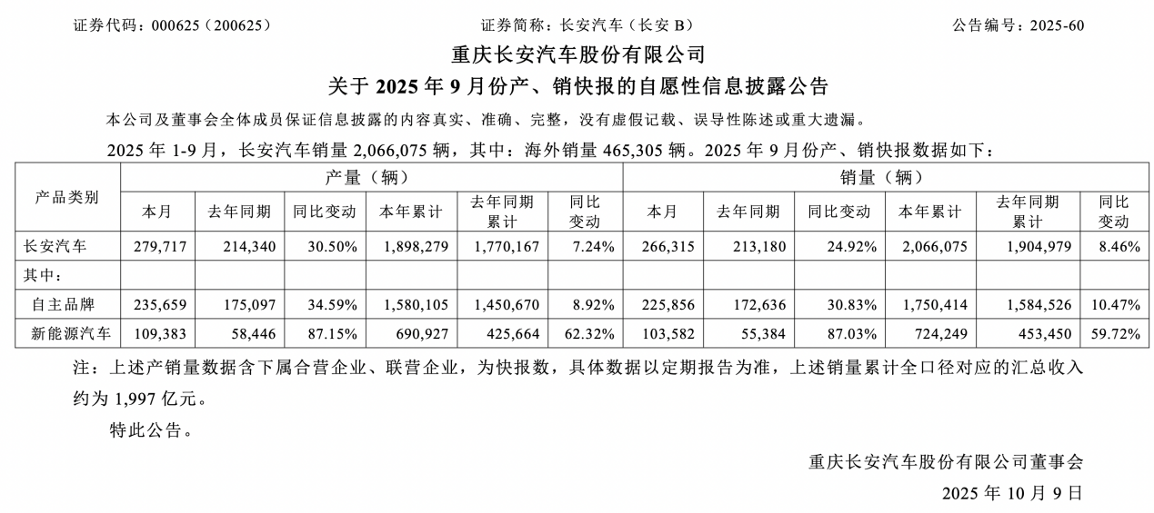 长安汽车2025年三季度延续“量价利”齐升,经营质量持续提升